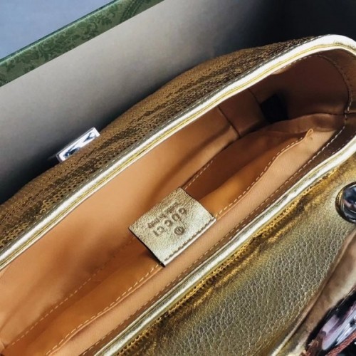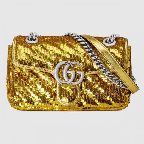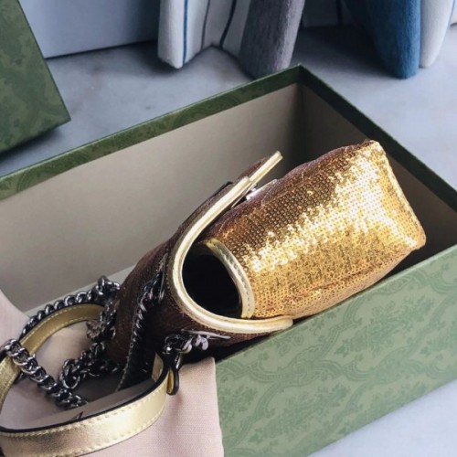 Gucci GG Marmont Mini Shouler Bag In Gold Sequin