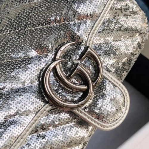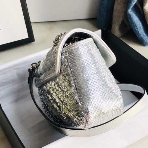 Gucci GG Marmont Mini Shouler Bag In Silk With Silver Sequin