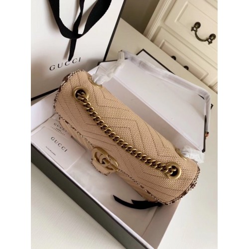 Gucci GG Marmont Raffia Small Shoulder Bag 443497 Beige/Gray 2019