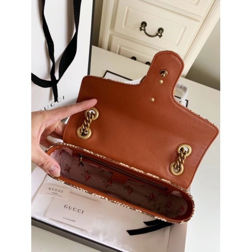 Gucci GG Marmont Raffia Small Shoulder Bag 443497 Beige/Green