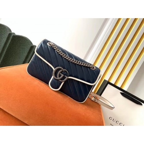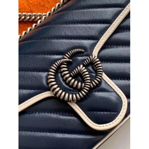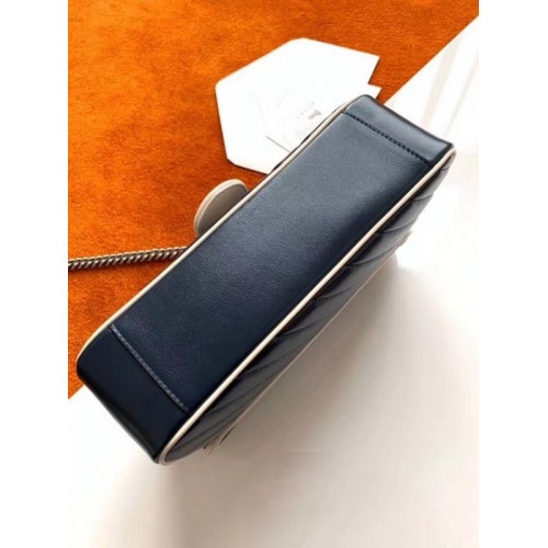 Tags: Gucci GG Marmont Small Shoulder Bag In Blue Diagonal Leather, ,