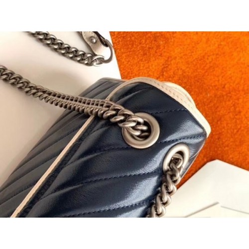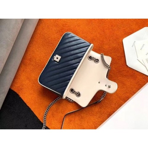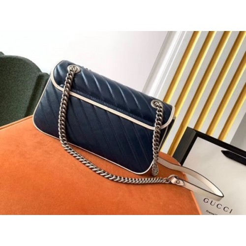 Gucci GG Marmont Small Shoulder Bag In Blue Diagonal Leather