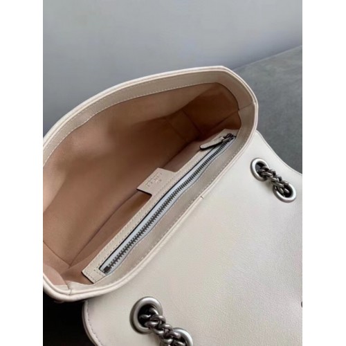 The GG Marmont bag is introduced in blue for Cruise 2020, made from diagonal matelassé quilted leather and completed with a twisted torchon Double G embellishment. The small chain shoulder bag's distinct softly structured shape is outlined in contrast white piping, highlighting its flap closure. The sliding chain strap smoothly transforms from a single shoulder length to a doubled top handle length for multiple ways to wear the bag.