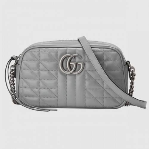 Gucci GG Marmont Small Shoulder Bag In Grey Matelasse Leather