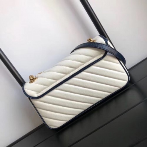 Gucci GG Marmont Small Shoulder Bag In White Diagonal Leather