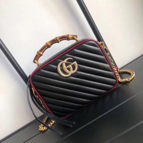 Gucci GG Marmont Small Shoulder Black Bag With Bamboo