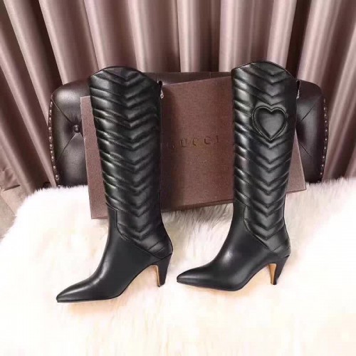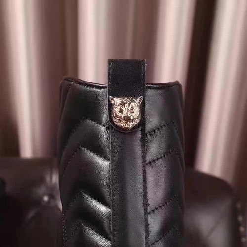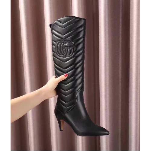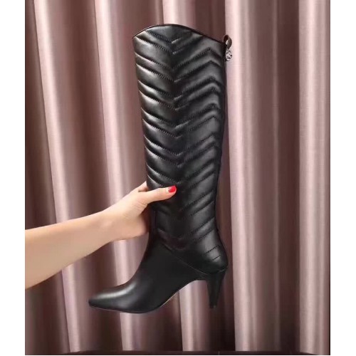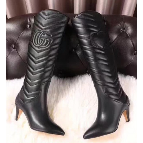 Gucci GG Matelasse Chevron Leather High Boots Black 2017
