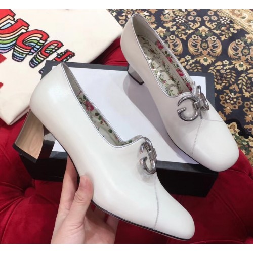 Gucci GG Mirrored Detail Rose Print Mid Heel Pumps White 2019