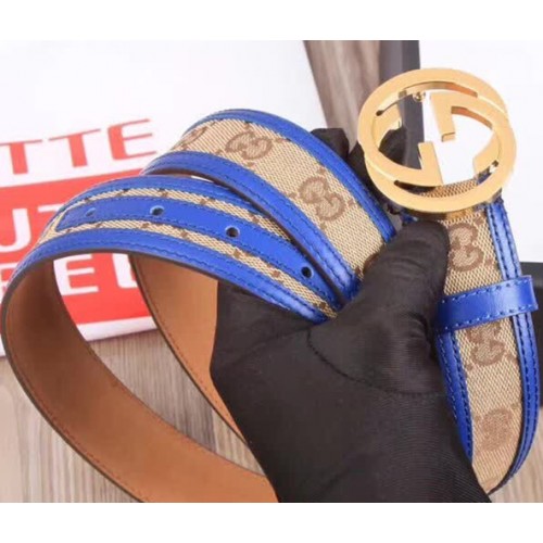 Gucci GG Supreme Belt with G Buckle 35mm Width Blue Leather