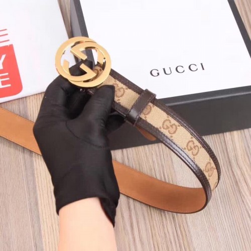 Gucci GG Supreme Belt with G Buckle 35mm Width Brown Leather