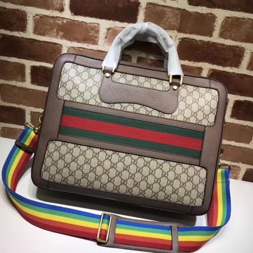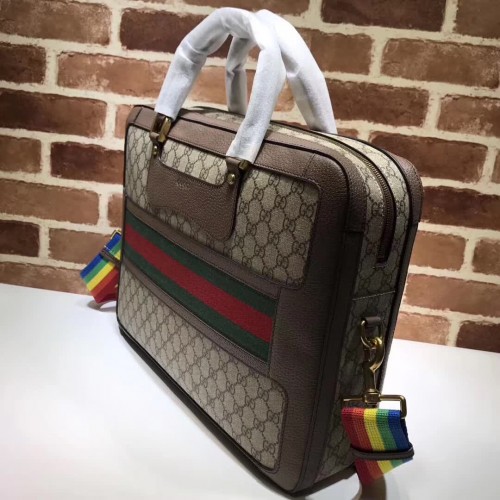 Gucci GG Supreme Briefcase Bag With Rainbow Strap 484663 Nude 2017