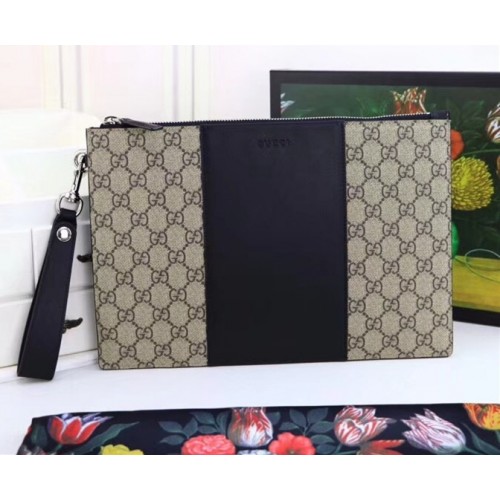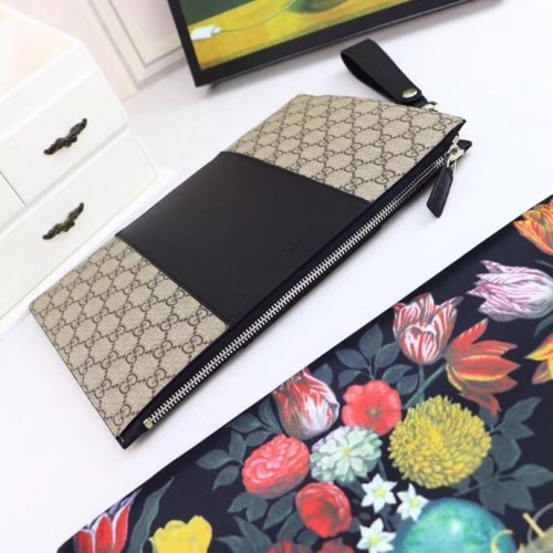 A slim pouch made in GG Supreme canvas with a Gucci embossed leather detail.
