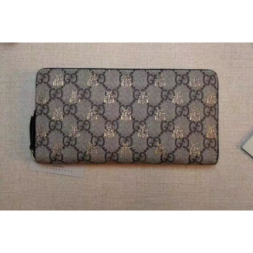 Gucci GG Supreme With Black Original Leather Bees Zip Around Wallet
