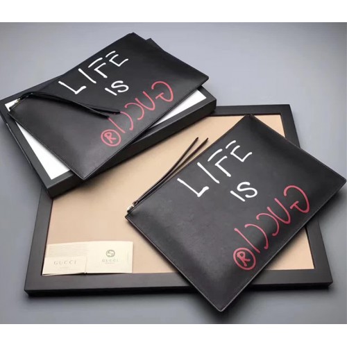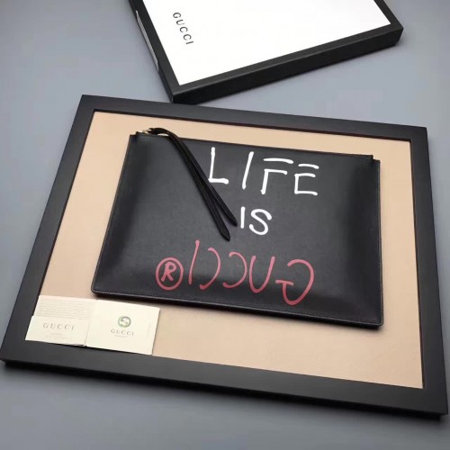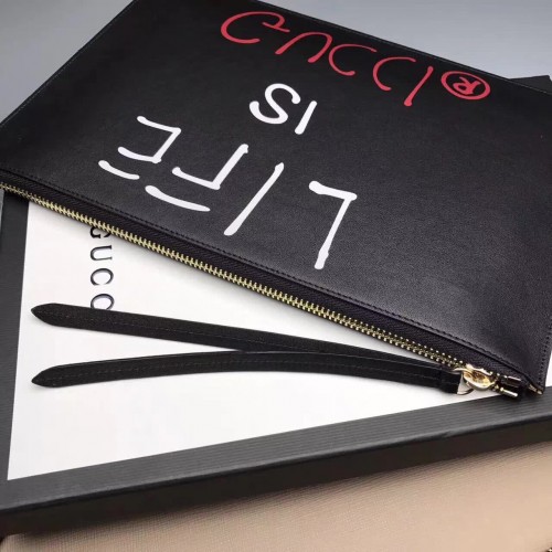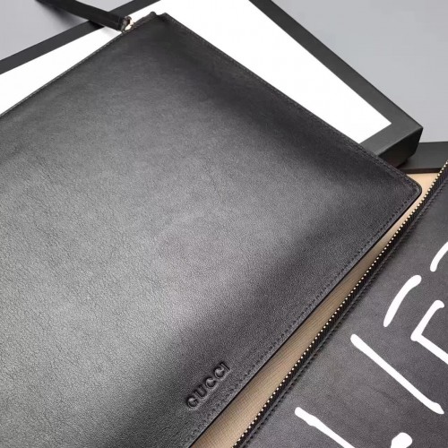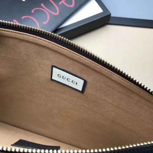 Gucci Ghost Calfskin Leather Letter Print Zip Pouch 457010 Black 2017