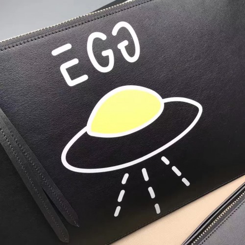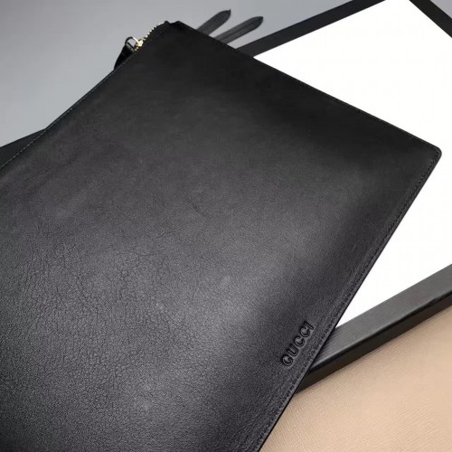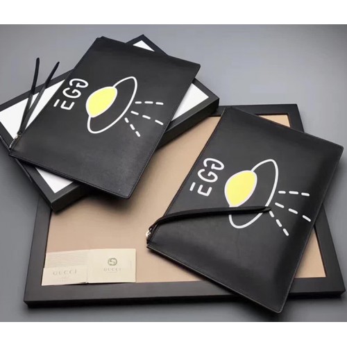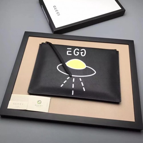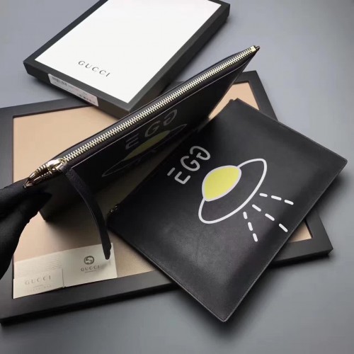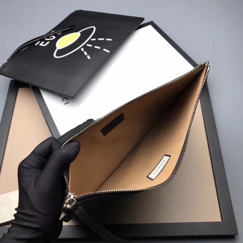 Gucci Ghost Calfskin Leather Space Boat Zip Pouch 457010 Black 2017