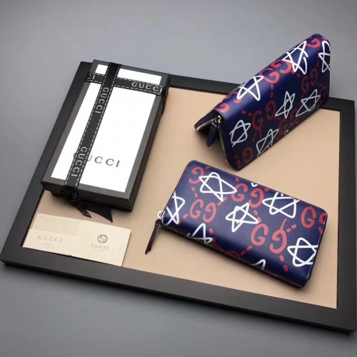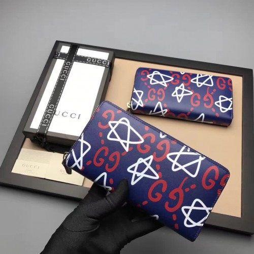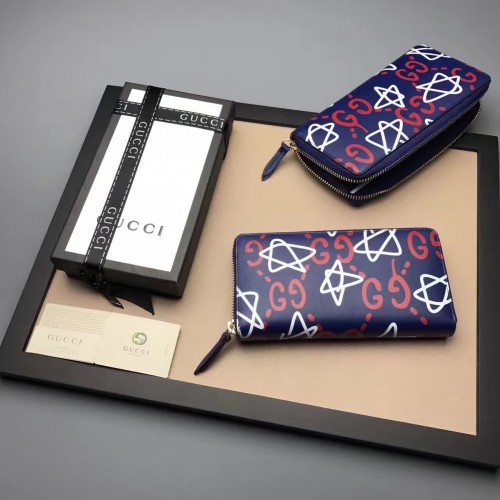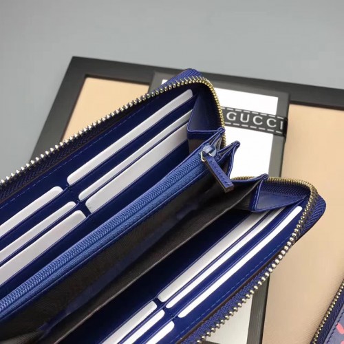 Gucci Ghost Calfskin Leather Zip Around Wallet 457012 Blue 2017