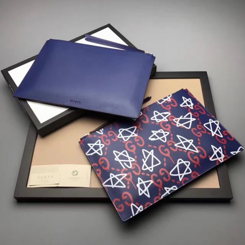 Gucci Ghost Calfskin Leather Zip Pouch 457010 Blue 2017