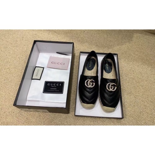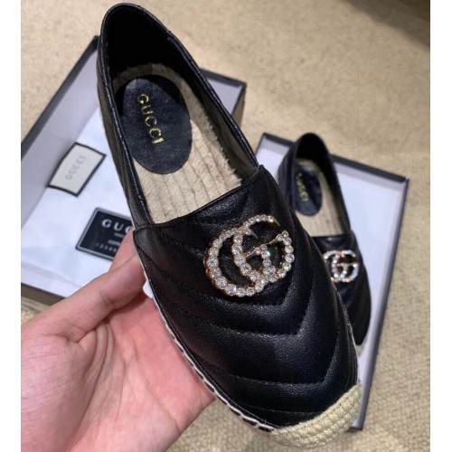 Gucci Glitter Espadrilles Black With Crystal Double G 2019