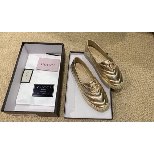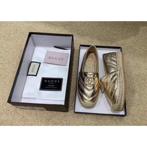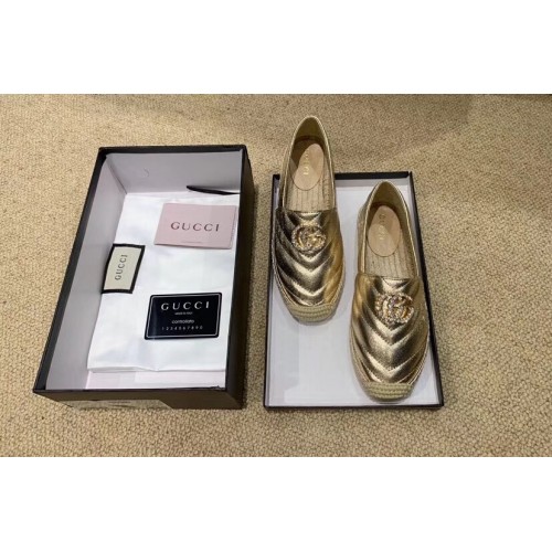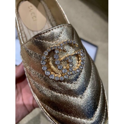 Gucci Glitter Espadrilles Gold With Crystal Double G 2019