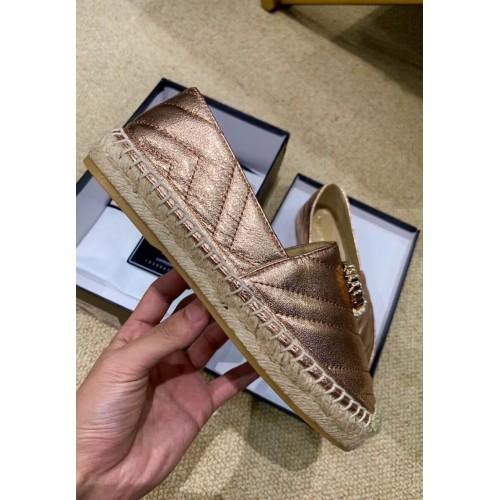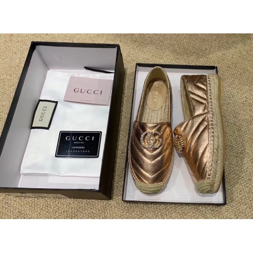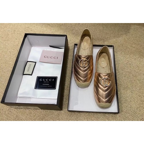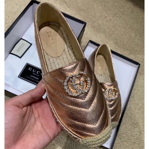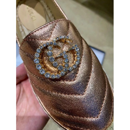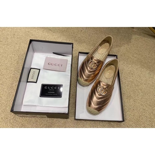 Gucci Glitter Espadrilles Pink Gold With Crystal Double G 2019