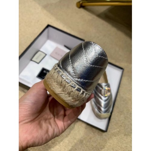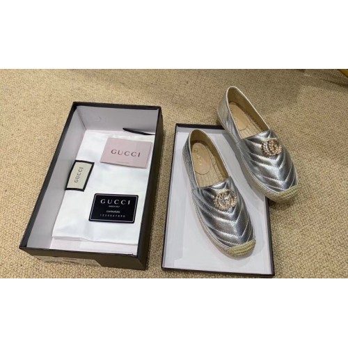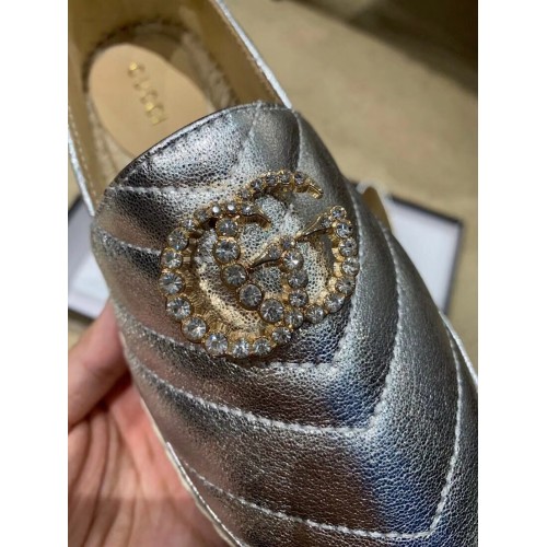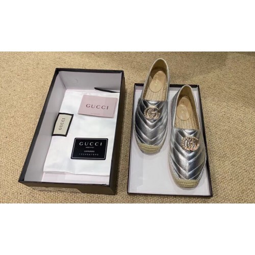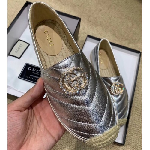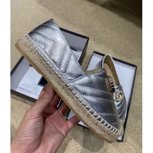 Gucci Glitter Espadrilles Silver With Crystal Double G 2019