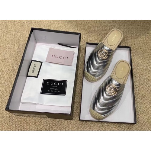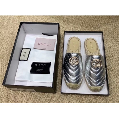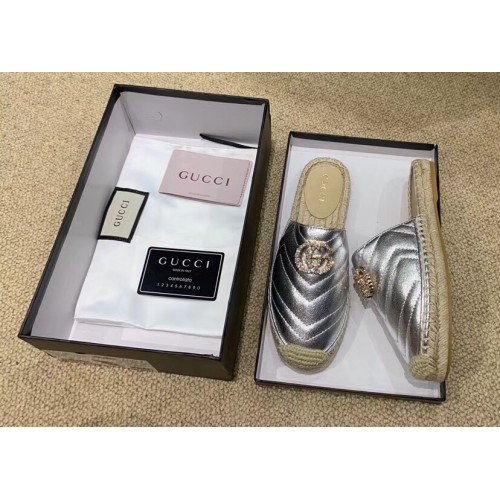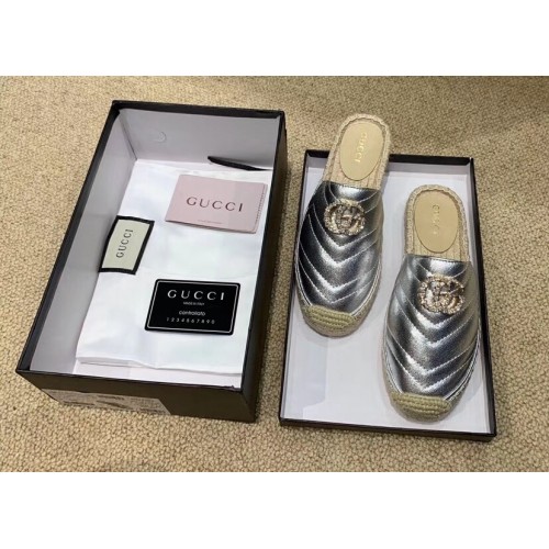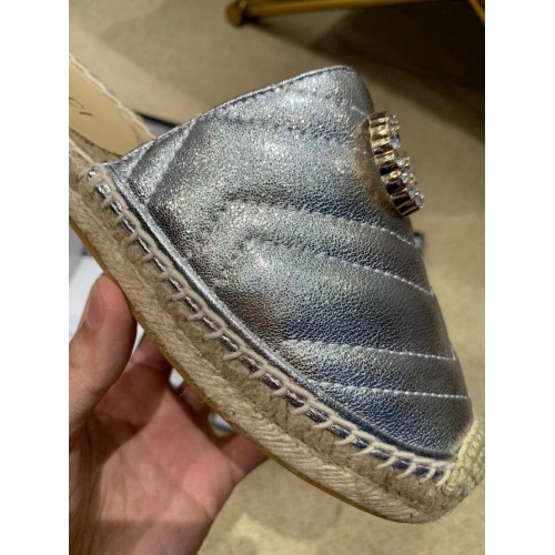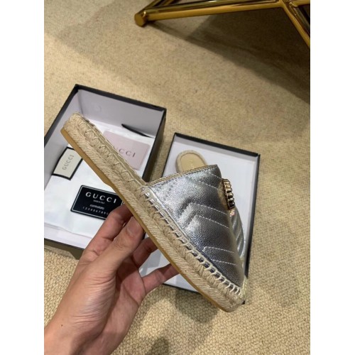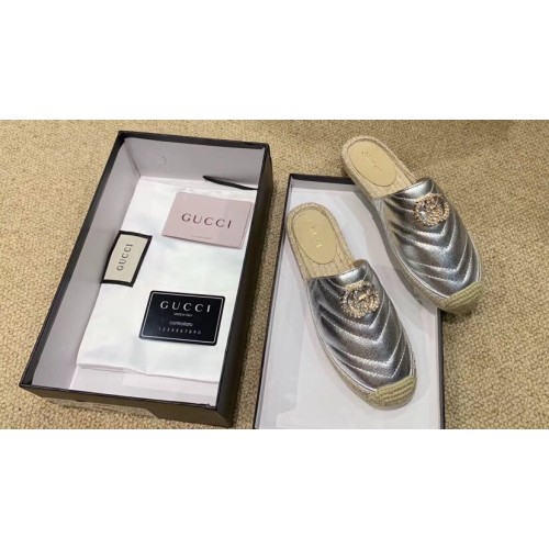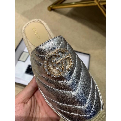 Gucci Glitter Espadrilles Slippers Silver With Crystal Double G 2019