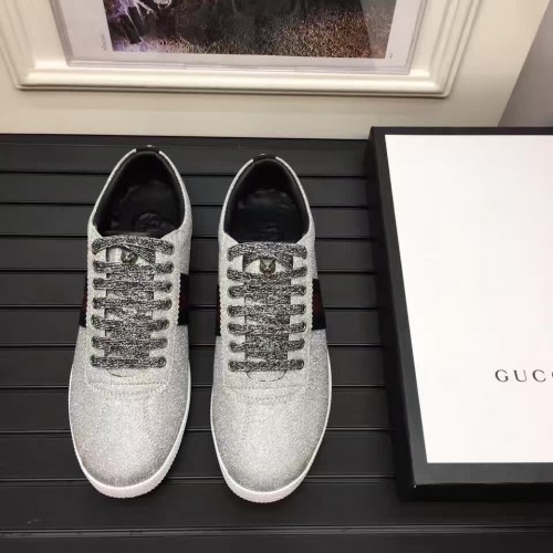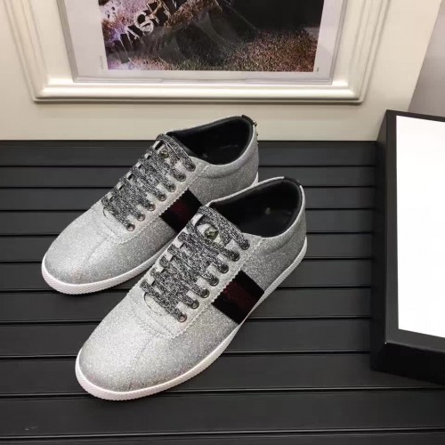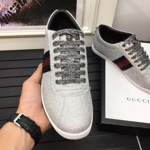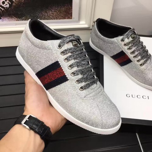 Gucci Glitter Fabric Web Stud Detail Low-up Sneaker 41972 Silver 2017
