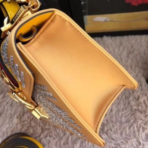 Gucci Gold Satin Sylvie Crystal Mini Bag