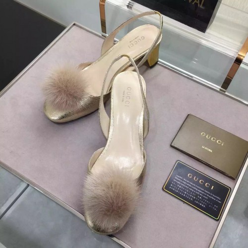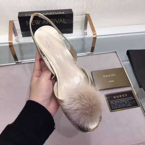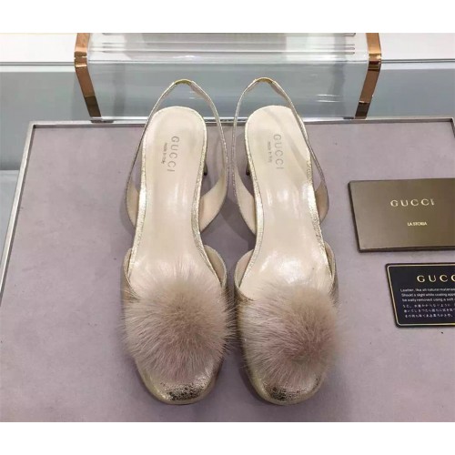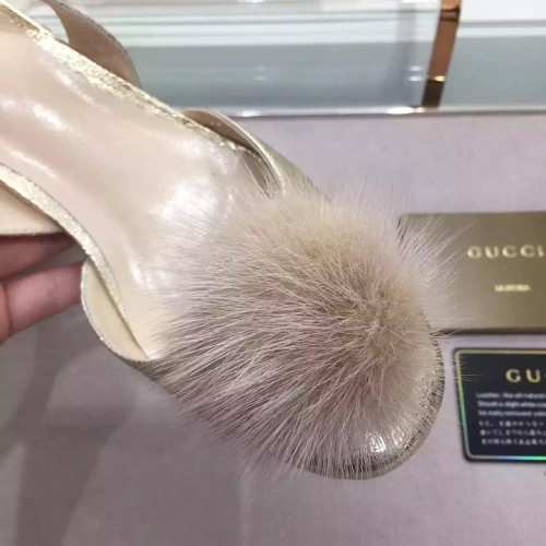Gucci grey Pompom Mink Fur Pumps
