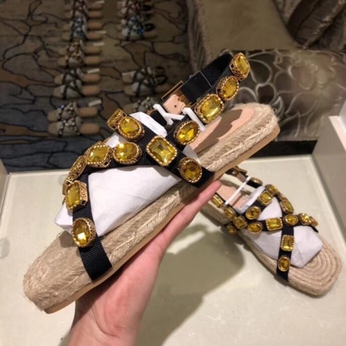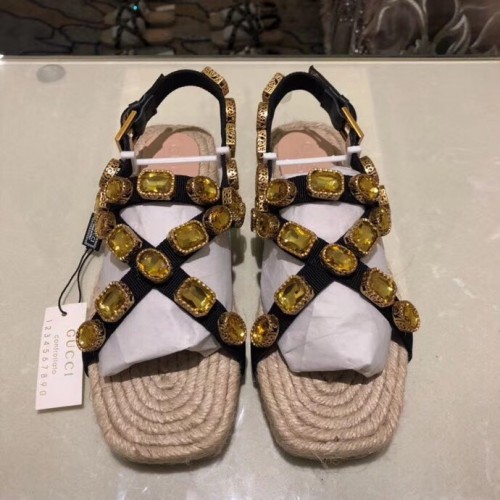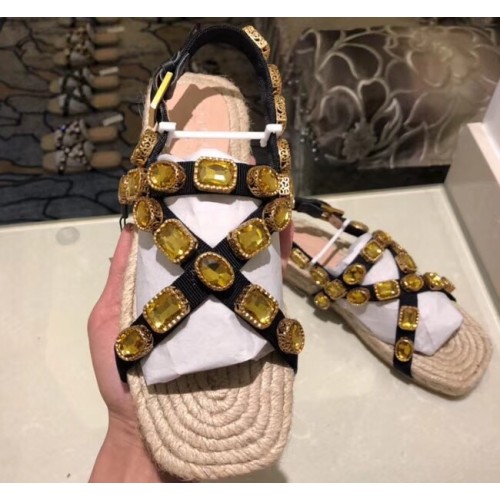 Gucci Grosgrain Espadrilles Sandals with Crystals 573024 Gold 2019