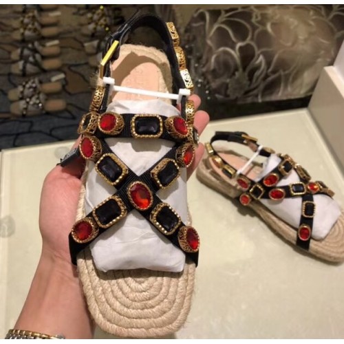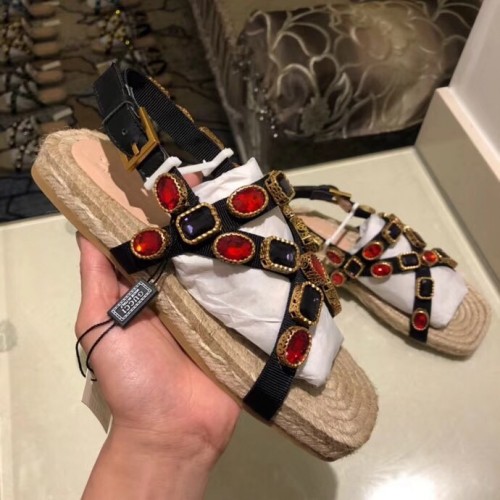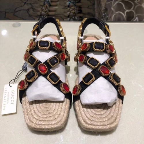 Gucci Grosgrain Espadrilles Sandals with Crystals 573024 Red 2019