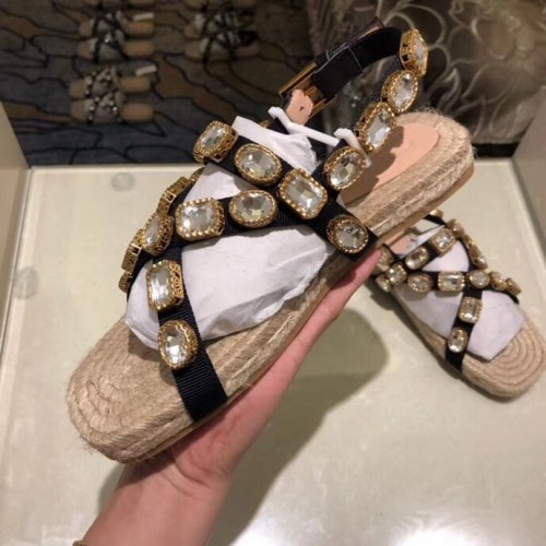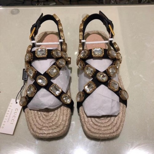Gucci Grosgrain Espadrilles Sandals with Crystals 573024 White 2019