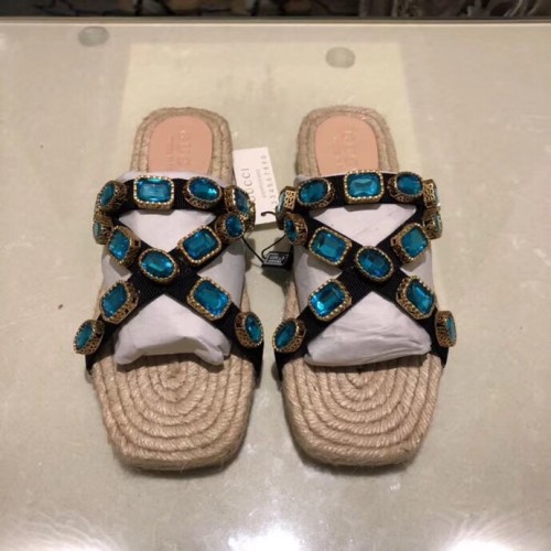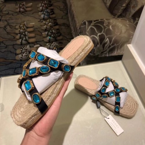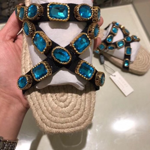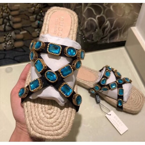 Gucci Grosgrain Espadrilles Slide Sandals with Crystals Blue 2019