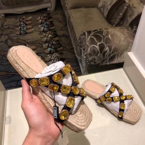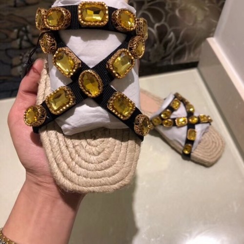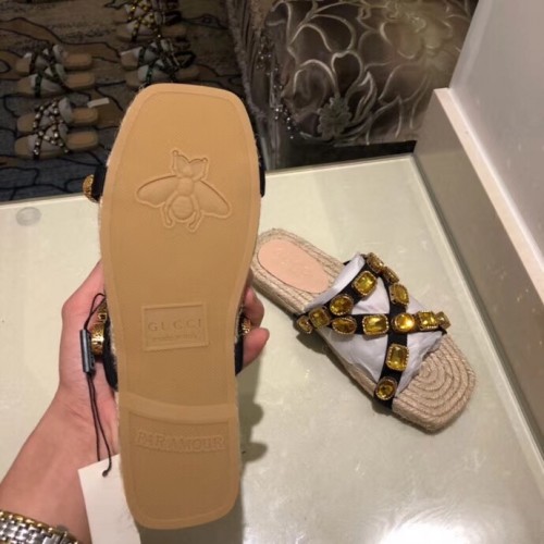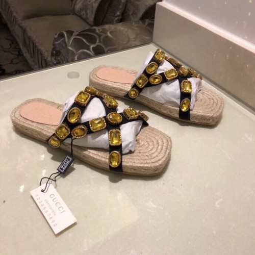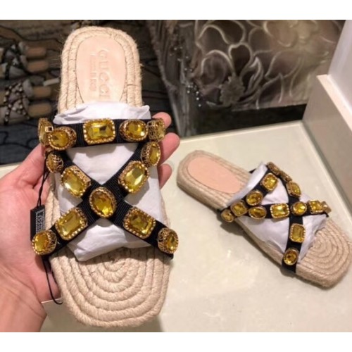 Gucci Grosgrain Espadrilles Slide Sandals with Crystals Gold 2019