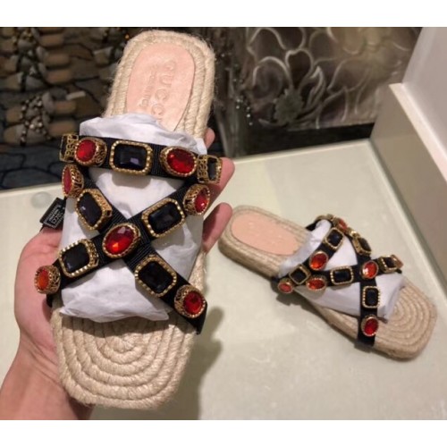Gucci Grosgrain Espadrilles Slide Sandals with Crystals Red 2019