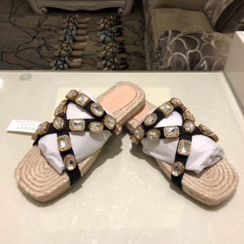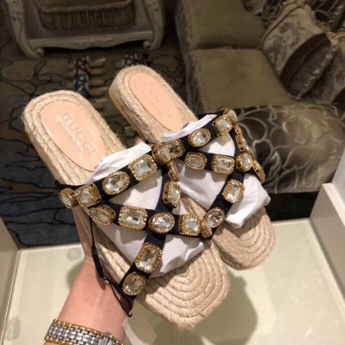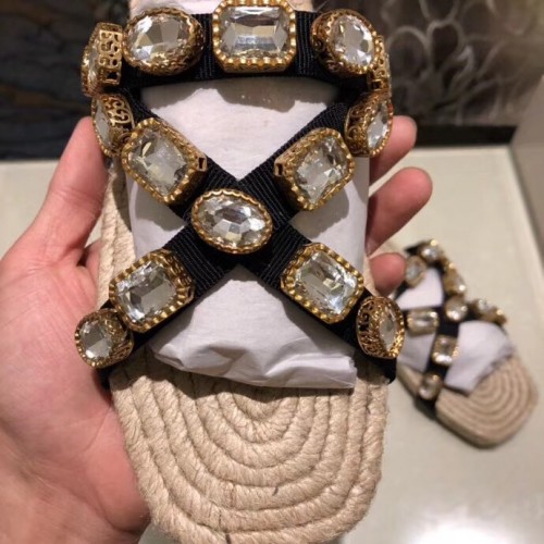 Gucci Grosgrain Espadrilles Slide Sandals with Crystals White 2019