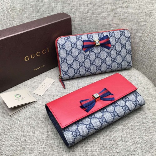 SIZE:19*10.5*3 CMThe Grosgrain zip around wallet, a classic shape with a new bow detail enhanced by a gold-framed Swarovski crystal.Beige/blue GG Supreme canvas, a material with low environmental impact, with hibiscus red leather detailTwelve card slots and three bill compartmentsOne zip coin pocket with gussetZip around closure19*10.5*3 CMBlue/red/blue grosgrain bow with unfinished edges and black Swarovski crystal in the centerMade in Italy