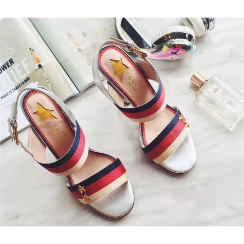 Gucci Grosgrain web sandal 432046 in metallic white leather