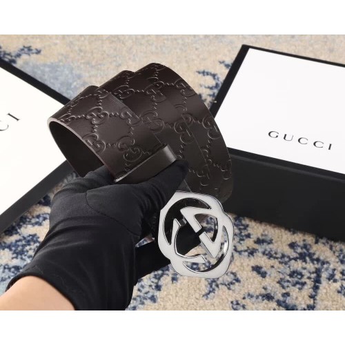 Gucci Guccissima Belt with interlocking G 3.8cm Width Silver Hardware