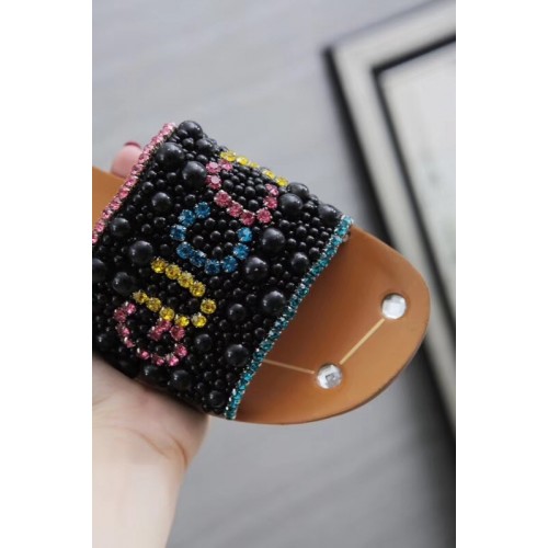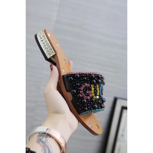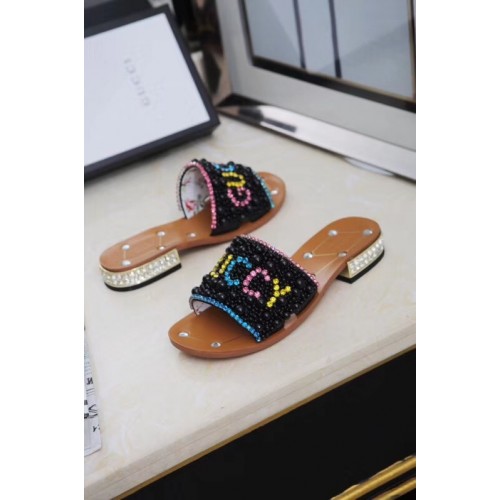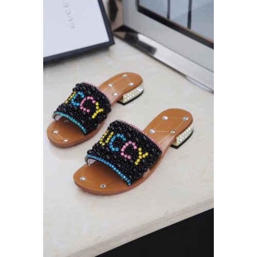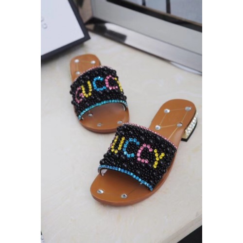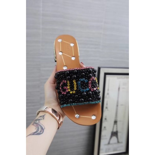 Gucci Guccy Pearl Slide Sandals Black With Crystal Heel 2019