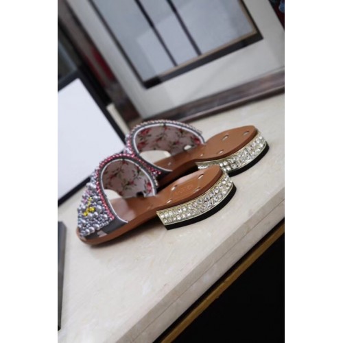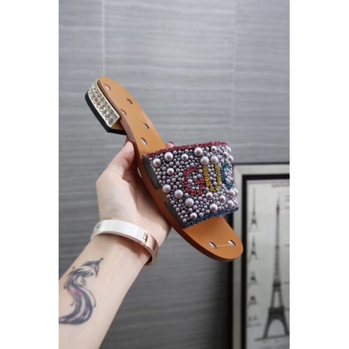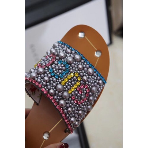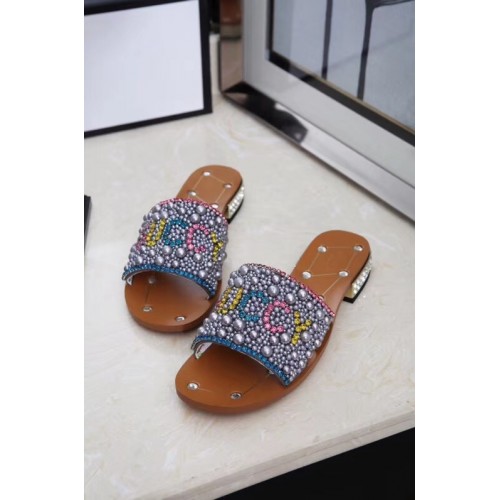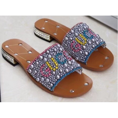 Gucci Guccy Pearl Slide Sandals Gray With Crystal Heel 2019