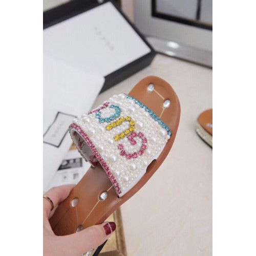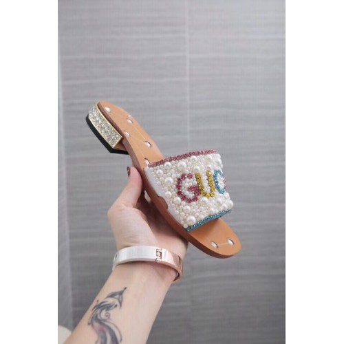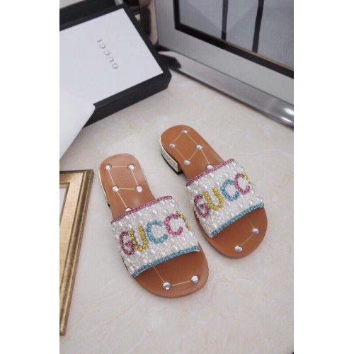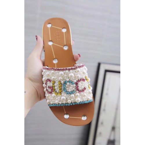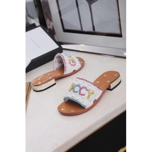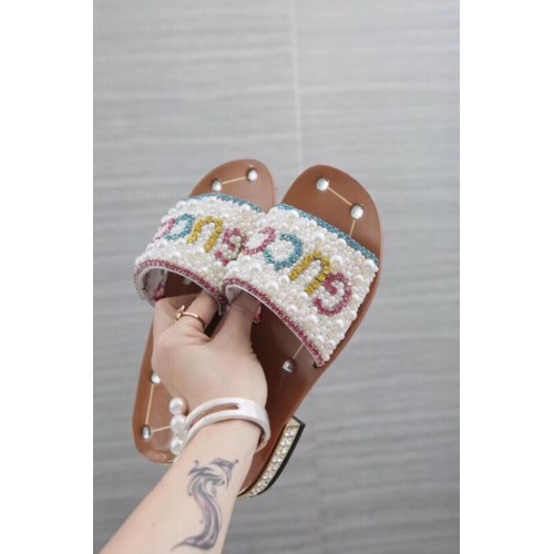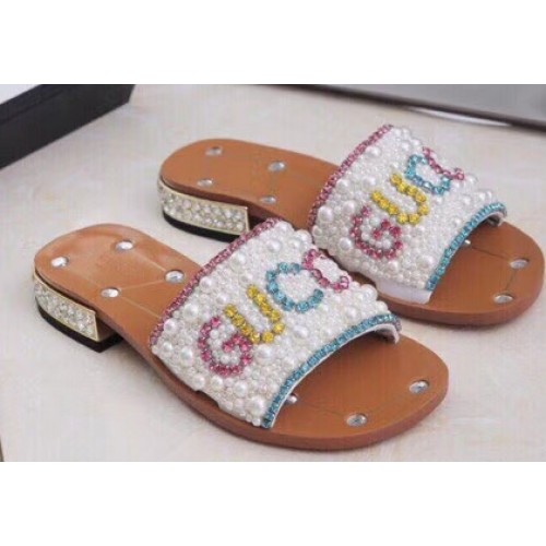 Gucci Guccy Pearl Slide Sandals White With Crystal Heel 2019
