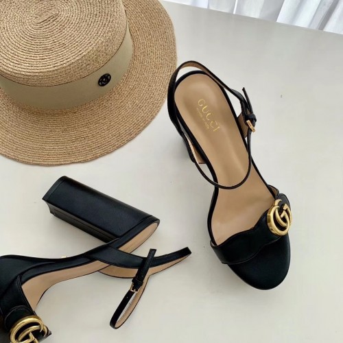 Gucci Heel 10cm Platform Sandals with Double G 573021 Original Quality Black 2019