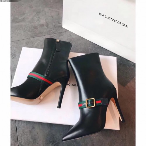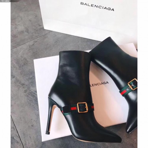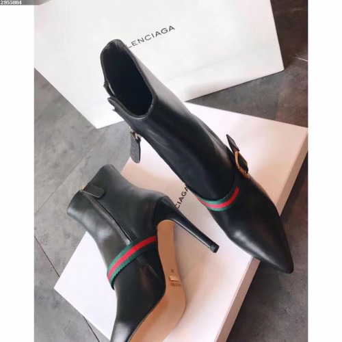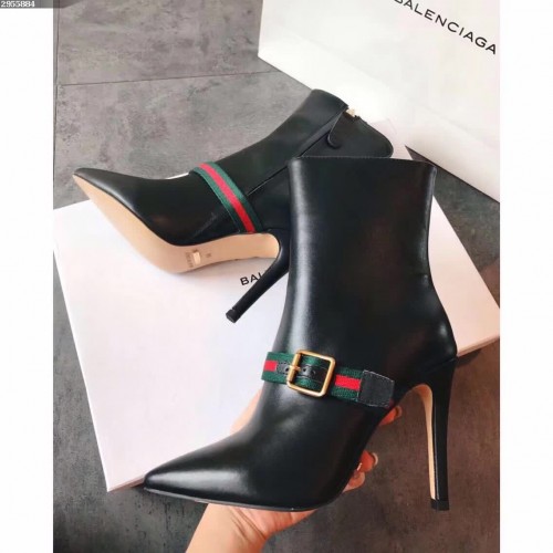 Gucci Heel 10cm Sylvie Leather Web Stripe With Buckled Belt Ankle Boot 475653 Black 2017