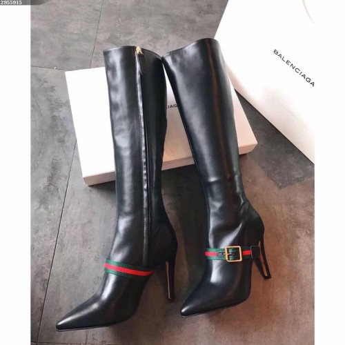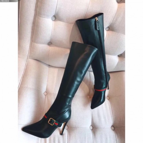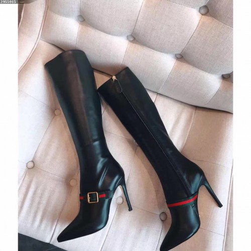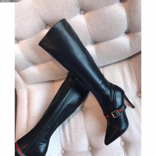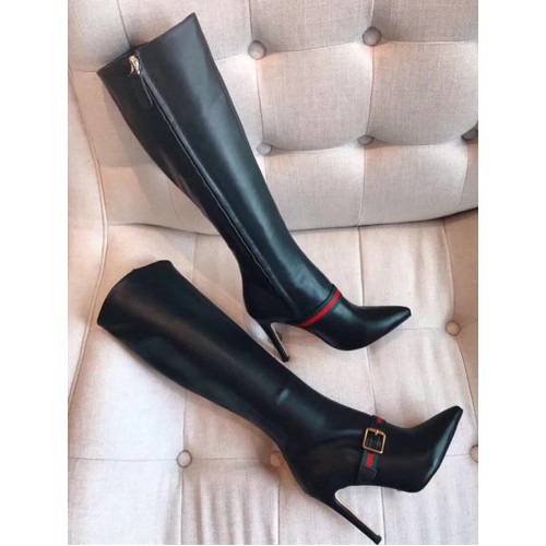 Gucci Heel 10cm Sylvie Leather Web Stripe With Buckled Belt Kee Boot 475650 Black 2017