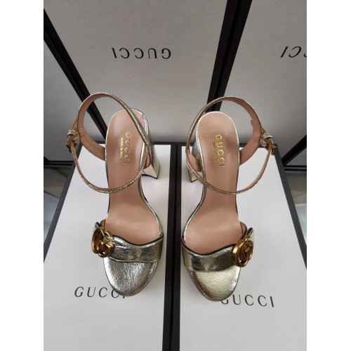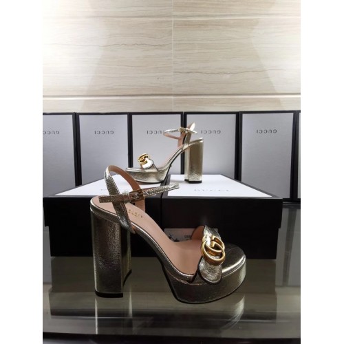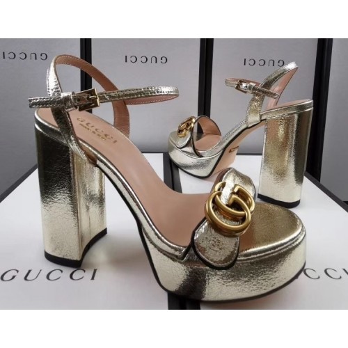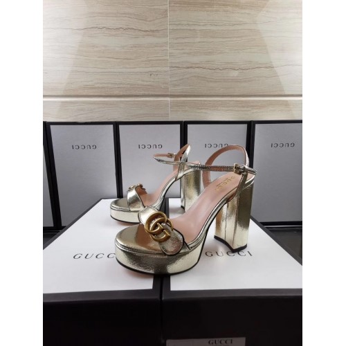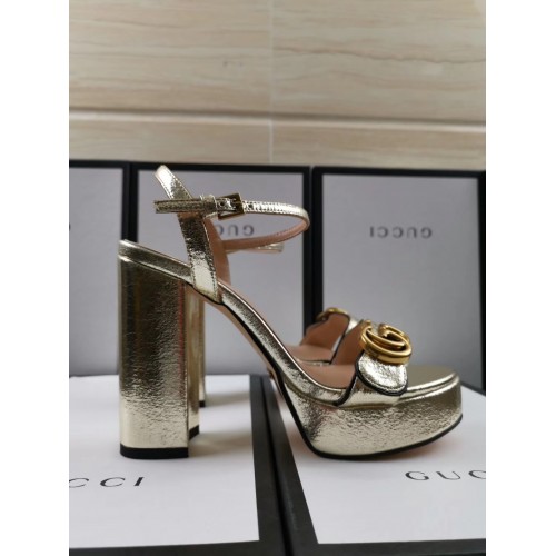 Gucci Heel 11cm Platform 2.5cm Sandals with Double G 573021 Gold 2019