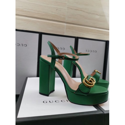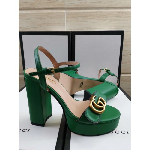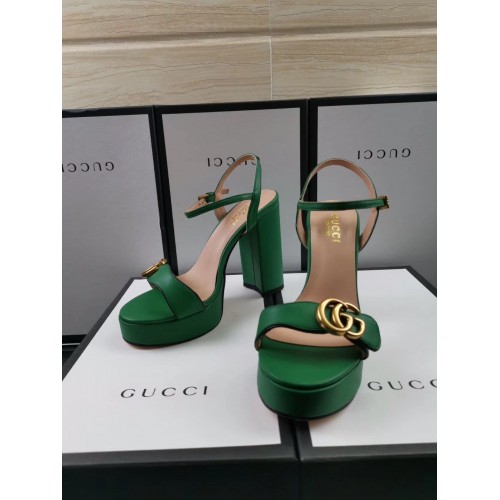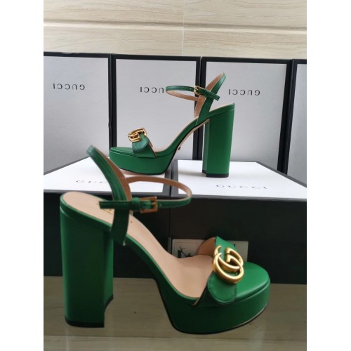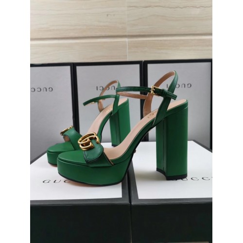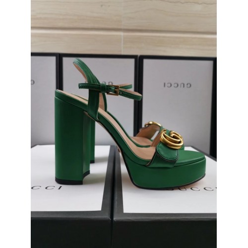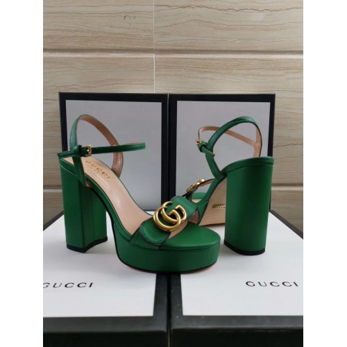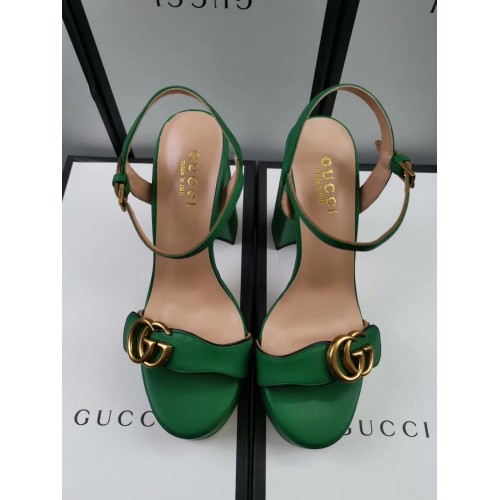 Gucci Heel 11cm Platform 2.5cm Sandals with Double G 573021 Green 2019