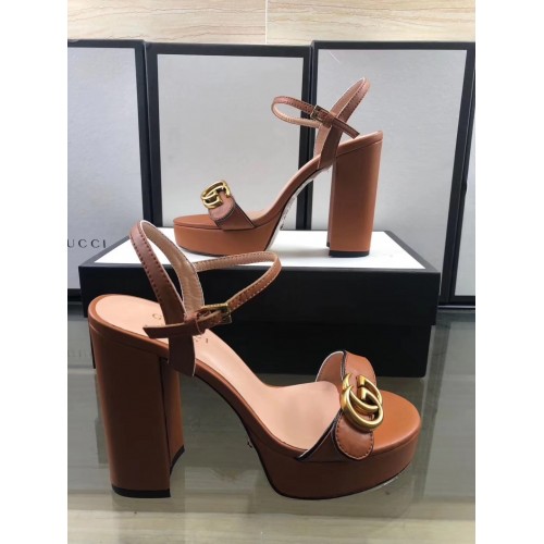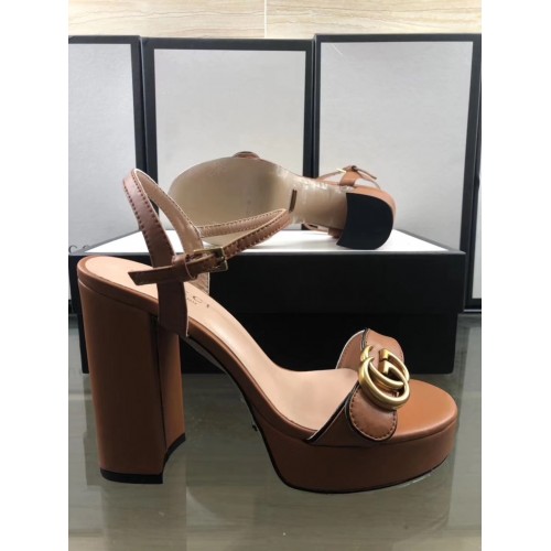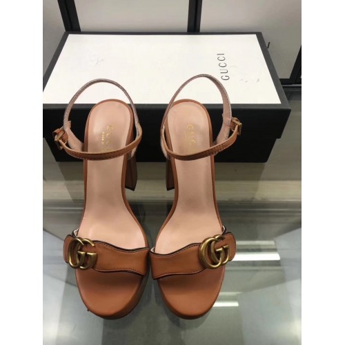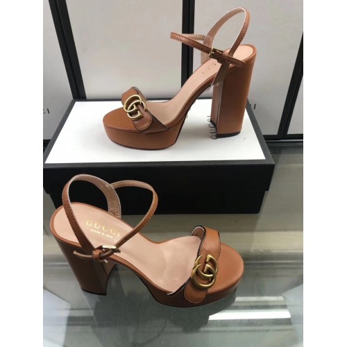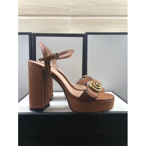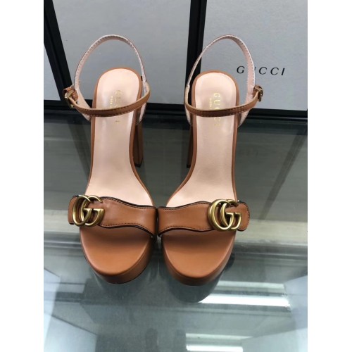 Gucci Heel 11cm Platform 2.5cm Sandals with Double G 573021 Khaki 2019