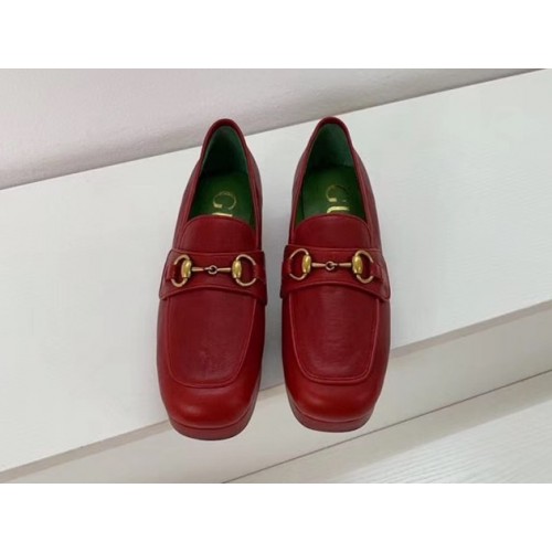 Gucci Heel 4.5cm Leather Platform Loafers with Horsebit red 2019