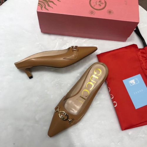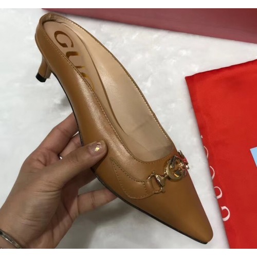 Gucci Heel 5.5cm Zumi Leather Slides 577053 Brown 2019